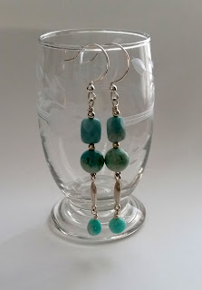 The matching earrings with more chrysocolla beads and amazonite use the textured silver links from the swap.